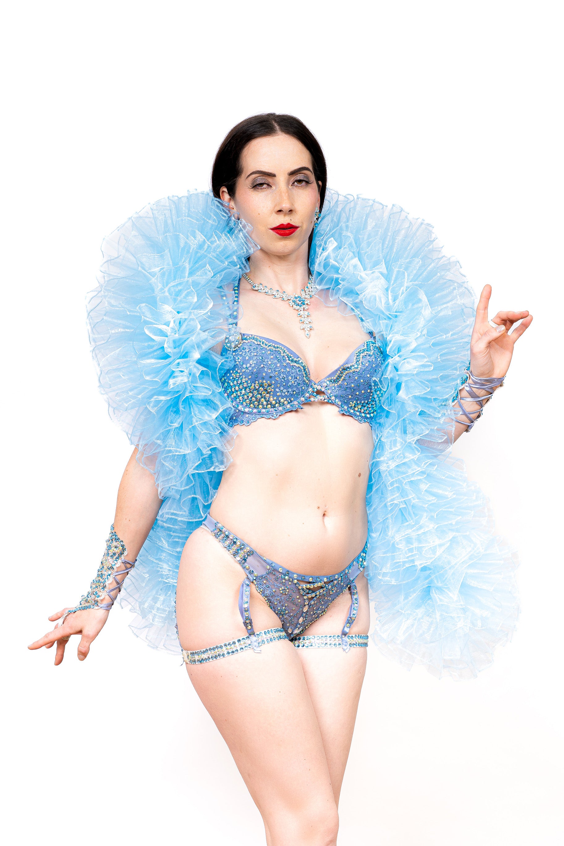 The Baby Blue Organza Boa is a glamorous addition to your wardrobe. Layers and layers of fluffy organza are transformed into a beautiful accent piece. Flaunt your new showpiece item