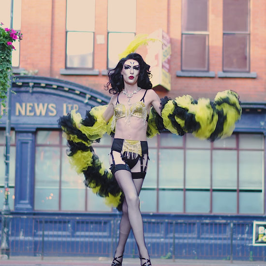 • Miss Mary Jane - Modelling the Black and Yellow Boa -12ft and 4 Layers