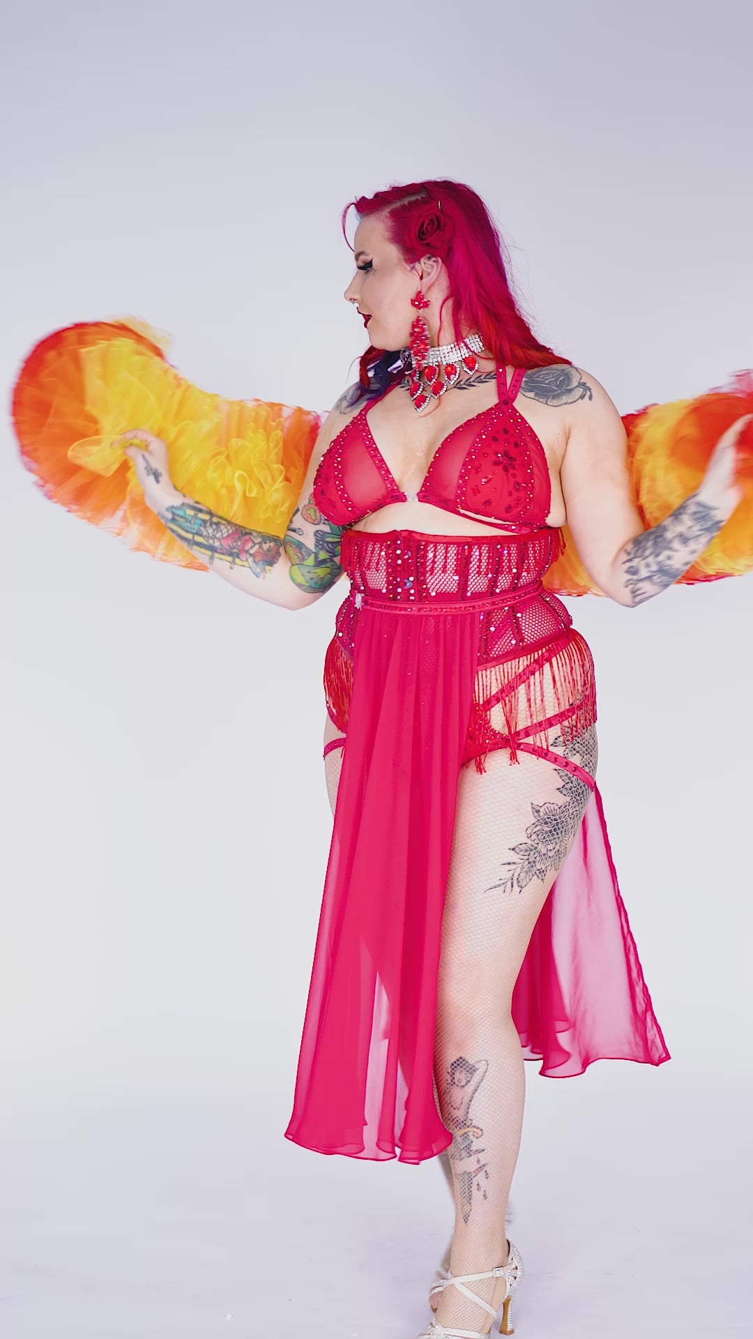 • Maiya Moo - Modelling the 6ft Fire Organza Boa - 4 Layers