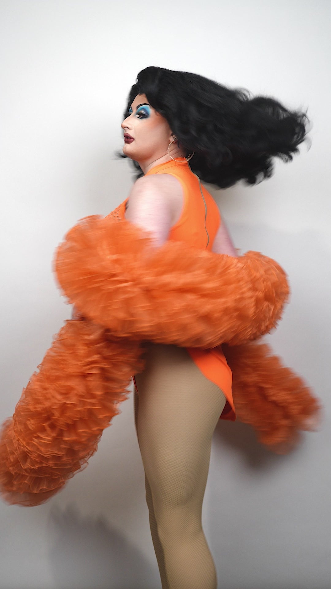 • Chrissy Toxicity - Modelling the 12ft Orange Organza Boa - 4 Layers.