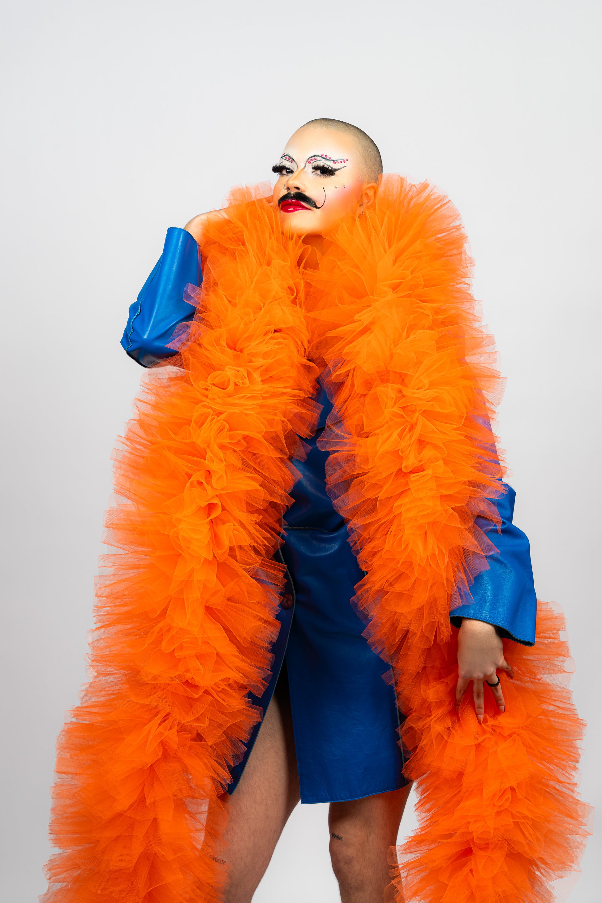 • Z (Zee) - Modelling the 9ft Orange Tulle Boa - 6 Layers.