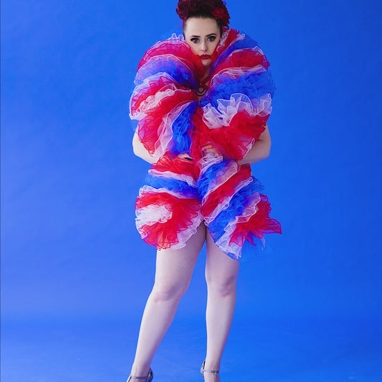 The USA Flag Organza Boa is a glamorous addition to your wardrobe. Layers and layers of fluffy organza are transformed into a beautiful accent piece. Flaunt your new showpiece item